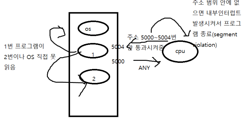 - 다른 사용자의 메모리 또는 운영체제 메모리 접근을 제한한다.